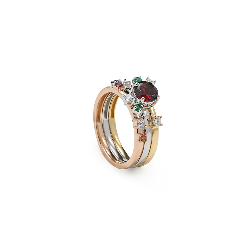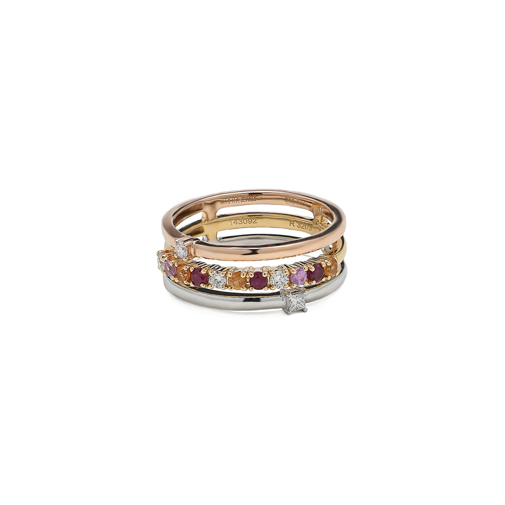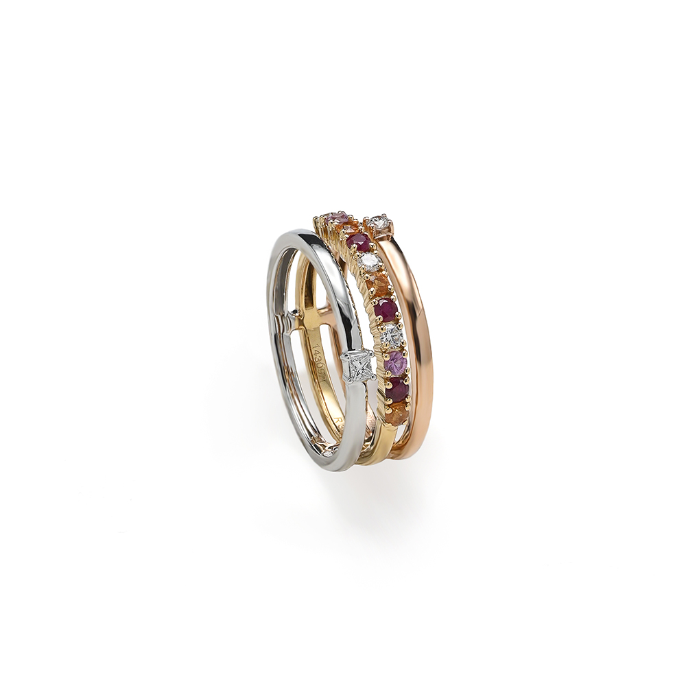 18K Rose Gold, White Gold, Yellow Gold (4.8 grams), VS, G Color Diamond (0.15 carat), and Precious Stones (0.052 grams) approximately.