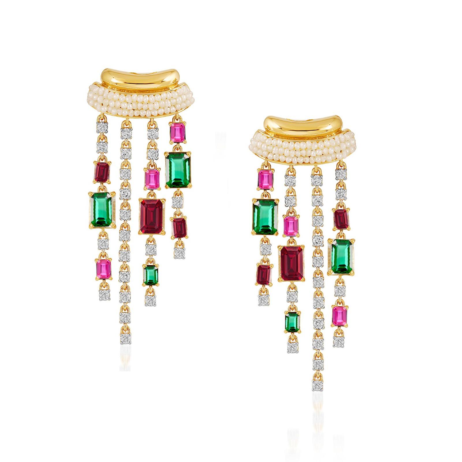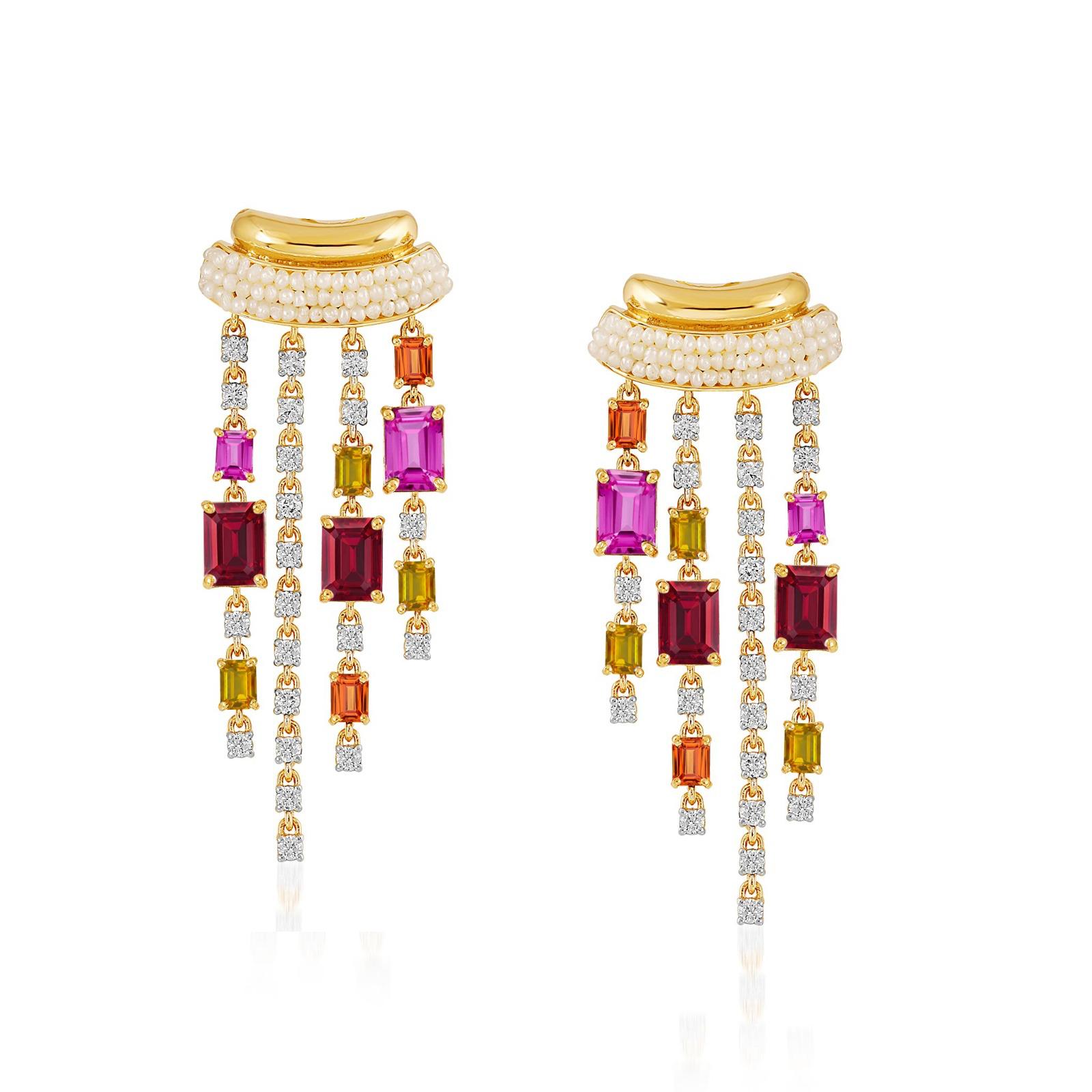 ذهب اصفر عيار 18 (8.5 جرام)، مرصع بالالماس درجة ڤي اس، اللون جي (0.28 قيراط)، الاحجار الكريمة (1.128 جرام)، ولؤلؤ بحريني طبيعي (0.078 جرام) تقريبًا.