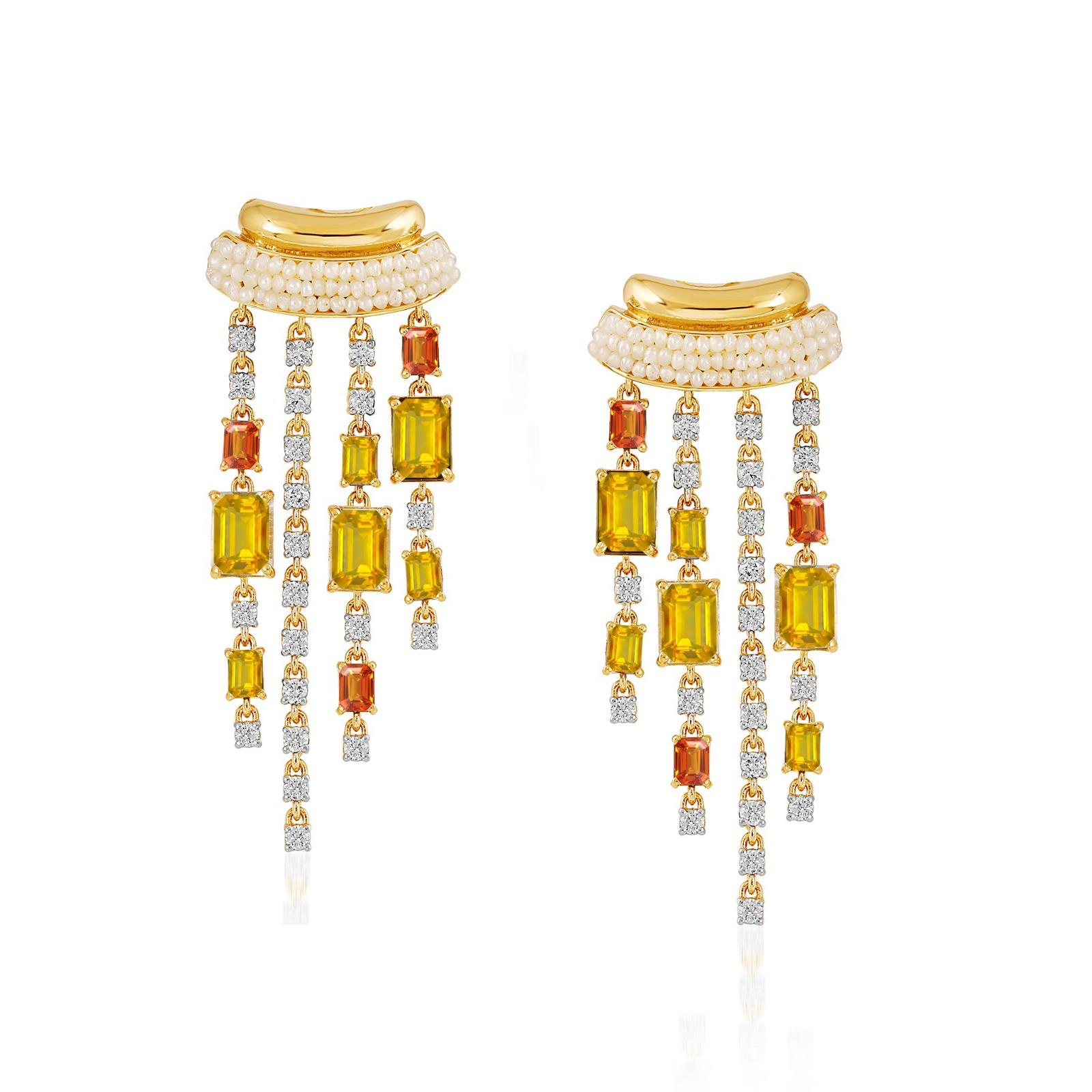 ذهب اصفر عيار 18 (8.5 جرام)، مرصع بالالماس درجة ڤي اس، اللون جي (0.28 قيراط)، الاحجار الكريمة (1.128 جرام)، ولؤلؤ بحريني طبيعي (0.078 جرام) تقريبًا.