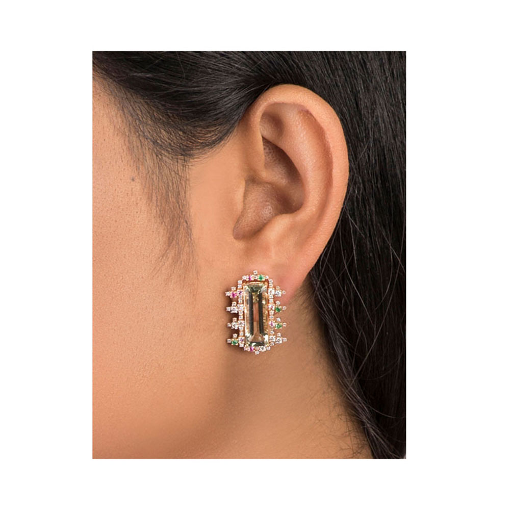 ذهب أصفر عيار 18 (11.74 جرام)، مرصع بالألماس درجة ڤي اس، اللون جي (4.455 قيراط)، وجمشت أخضر (2.968 جرام) تقريبًا.